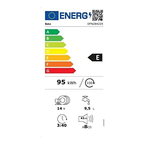 Specificaties: Beko DFN28422X Vaatwasser, vrijstaand, 14 couverts, A++, roestvrij staal, maximale grootte (60 cm), knoppen, LCD)