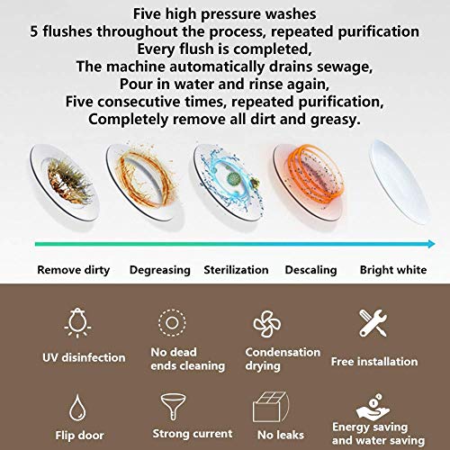 ★ VIJF KEER WASSEN MET HOGE DRUK: 5 keer wassen tijdens het verwijderen van vuil, ontvetten, steriliseren, ontkalken en verhelderen. Herhaalde zuivering. Nadat elke wasbeurt is voltooid, voert de machine automatisch het riool af en gaat vervolgens het water in en verwarmt en wast, vijf opeenvolgende keren, herhaald Purify, verwijder alle vuil en vettig volledig.
